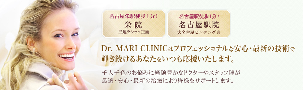 Dr.MARI CLINICでは、患者様のご希望に沿った最新最適な「美容皮膚・形成」「皮膚科」「内科」「婦人科」「乳腺科」の治療を行っております。